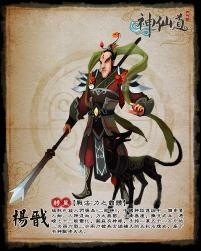 描述:杨戬也被人们称为"二郎神",传说中一个重要人物。人神混血,力大无穷,法术无边,撒豆成兵,通晓七十三般变化,阙庭有神眼,手持二万五千二百斤的三尖两刃戟三尖两刃枪为女娲补天的五彩石炼成,座下有神兽哮天犬。