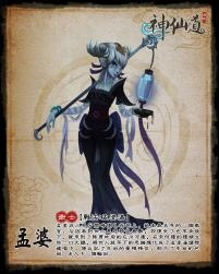 描述:孟婆从三界分开时便已在世上,她本为天界的一个散官。后因看到世人恩怨情仇无数,即便死了也不肯放下,就来到了阴曹地府的忘川河边,在奈何桥 的桥头立起一口大锅,将世人放不下的思绪炼化成了孟婆汤让阴魂喝下,便忘记了生前的爱恨情仇,卸下了生前的包袱,走入下一个轮回。