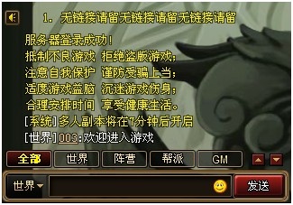 游戏中有、附近、阵营、帮派、GM五个聊天频道。 聊天频道发布